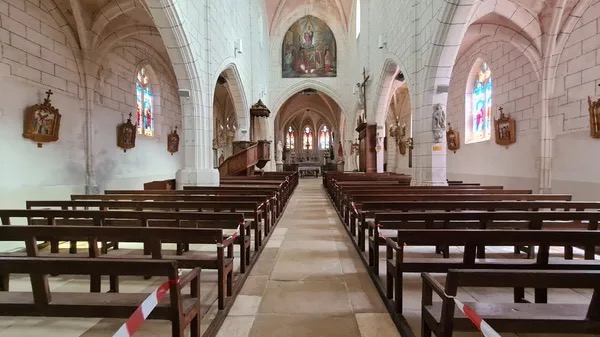 Le manque d’unité de la façade est attribuable à une seconde campagne de construction. L’église a été restaurée en 1885 par les frères Victor et Jean Farcy, selon Pignard-Péguet, et l’ancien porche a disparu.